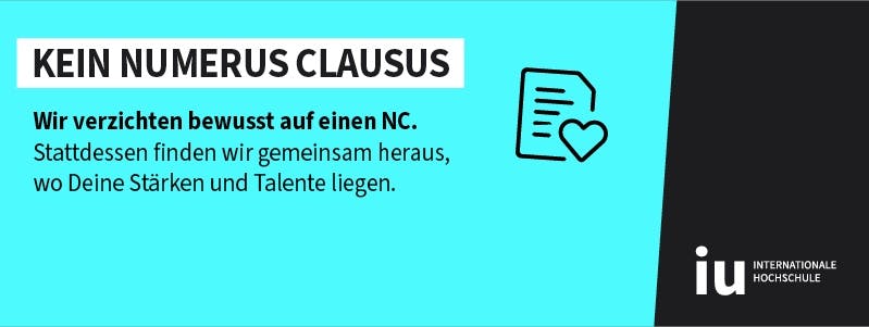 Als Bewerber:in mit einer allgemeinen Hochschulreife (Abitur) oder fachgebundenen Hochschulreife (fachgebundenes Abitur) kannst Du direkt zum dualen Bachelorstudium an der IU zugelassen werden. Dabei gibt es bei keinem unserer Studiengänge einen Numerus Clausus. Stattdessen führst Du mit Deiner Studienberatung ein IU Bewerbungsgespräch, bei dem wir Deine Stärken und Interessen kennenlernen möchten.