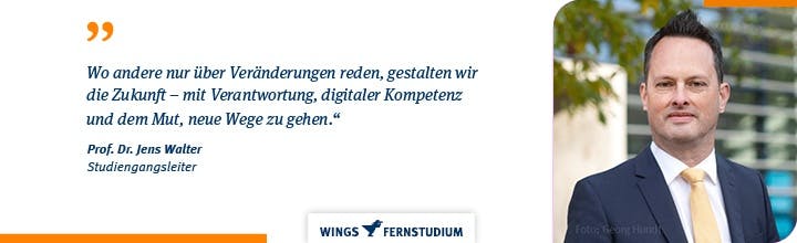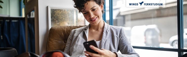 Bei WINGS studieren Sie nach Ihrem eigenen Zeitplan. Mit unserer interaktiven Lernplattform myWINGS und der App für unterwegs studieren Sie, wann es für Sie am besten passt. Auch Ihre Prüfungen können Sie bequem online schreiben. In der Lehre setzen wir den Fokus auf eine optimale Verzahnung von Theorie und Praxis. Unsere persönliche Studienbetreuung unterstützt Sie bei allen Fragen rund um Ihr Onlinestudium.