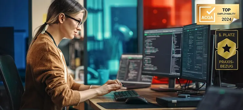 Packenden Praxisprojekte und Fallstudien: Werde dank massiven 42%-Praxisanteil zum professionellen Knotenlöser, der komplexe Probleme meistert, innovative Branchenlösungen zaubert und die Herzen von Personalern höher schlagen lässt.