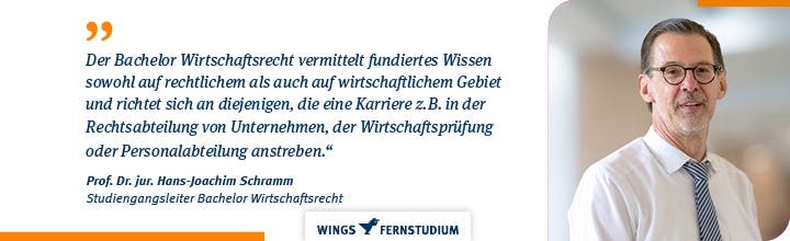 Der Bachelor Wirtschaftsrecht kombiniert die klassische Wirtschaftslehre mit fundiertem juristischem Wissen. Das Onlinestudium behandelt alle relevanten rechtlichen Fragestellungen im wirtschaftlichen Kontext. Werden Sie der kompetente Ansprechpartner:in für die rechtlichen Themen von Unternehmen unterschiedlichster Branchen.