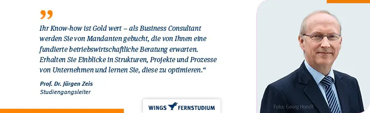 Das berufsbegleitende Fernstudium MBA Business Consulting bietet Ihnen vielfältige berufliche Optionen. Nach Abschluss des Studiums sind Sie in der Lage, relevante betriebswirtschaftliche Projekt- und Beratungsfelder zu bearbeiten und tragfähige Lösungen für Ihr Unternehmen bzw. Ihren Mandanten zu finden und zu implementieren.