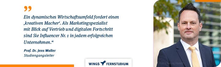 Mit dem Fernstudium Bachelor Marketing werden Sie praxisnah auf die Rolle eines Marketingmanagers vorbereitet. Sie verbinden ökonomisches Wissen mit allen Bereichen des Marketings und lernen, dieses gezielt im Unternehmensalltag einzusetzen. Erwerben Sie branchenübergreifendes Know-how, Fach- und Methodenkompetenz – und werden Sie zu einem gefragten Experten in der Wirtschaft.