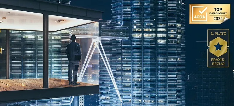 - Keine Zeit für Langeweile: 42% Praxisanteil bedeuten: Projekte statt Vorlesungen. Du arbeitest mit echten Branchenexperten, knüpfst wertvolle Kontakte und sammelst Erfahrung, die Gold wert ist.